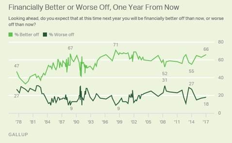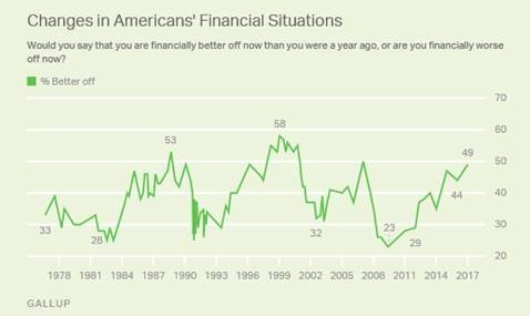 This week Gallup published their Personal Financial Assessment results, showing that “Americans are more upbeat about their personal finances today than at any time in the past 10 years.”